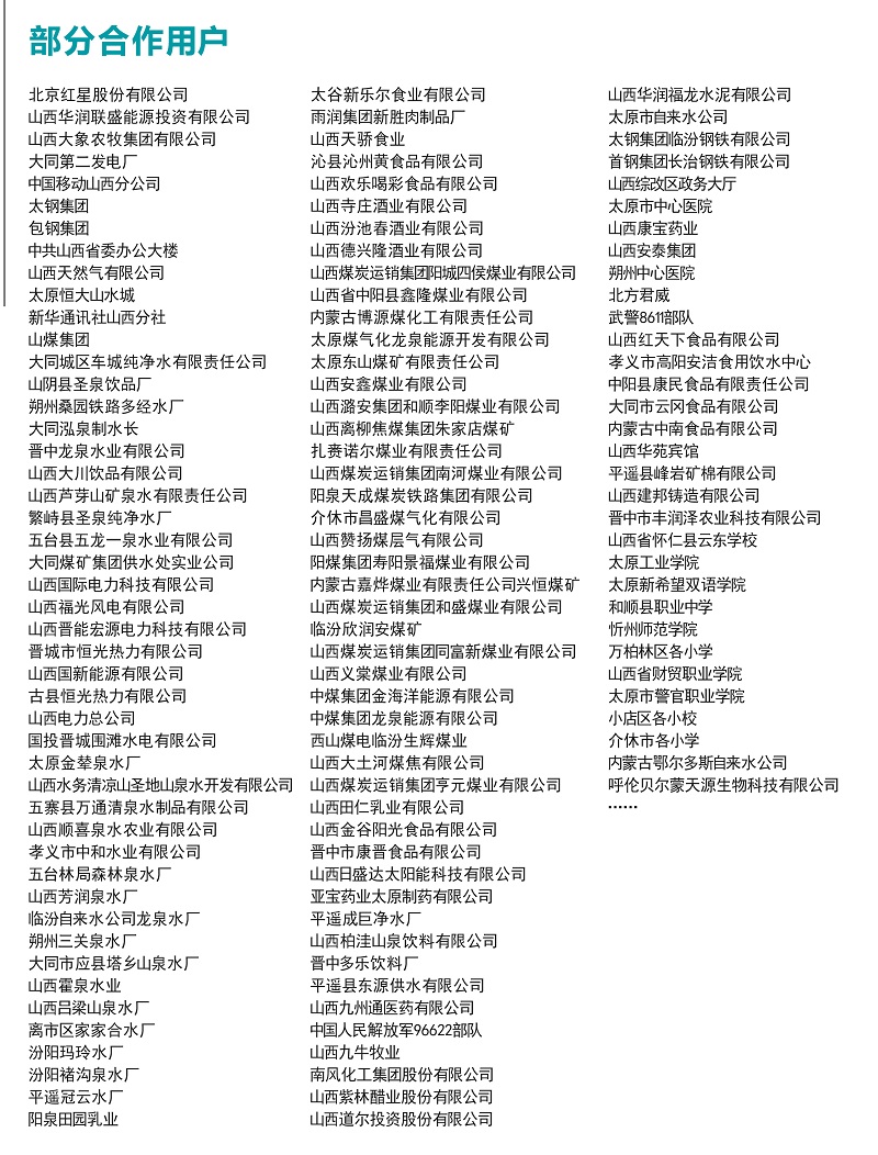 公司主要經(jīng)營供水,在職員工有30人,與多家長治自來水廠黃頁零售商和代理商建立了長期穩(wěn)定的合作關(guān)系,品種齊全、價格合理,企業(yè)實力雄厚,重信用、守合同、保證產(chǎn)品質(zhì)量,以多品種經(jīng)營特色和薄利多銷的原則,贏得了廣大客戶的信任,公司始終奉行“誠信求實、致力服務(wù)、唯求滿意”的企業(yè)宗旨,全力跟隨客戶需求,不斷進行產(chǎn)品創(chuàng)新和服務(wù)改進。